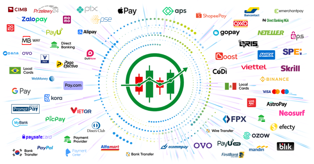 Over 40 payment methods are available in our trading